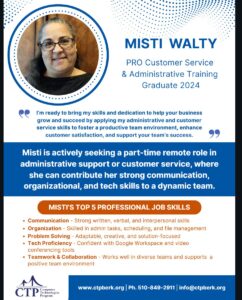 CTP is approved by the Bureau for Private Postsecondary Education. CTP works closely with the California Department of Rehabilitation and also offers personalized services for those who wish to private pay.